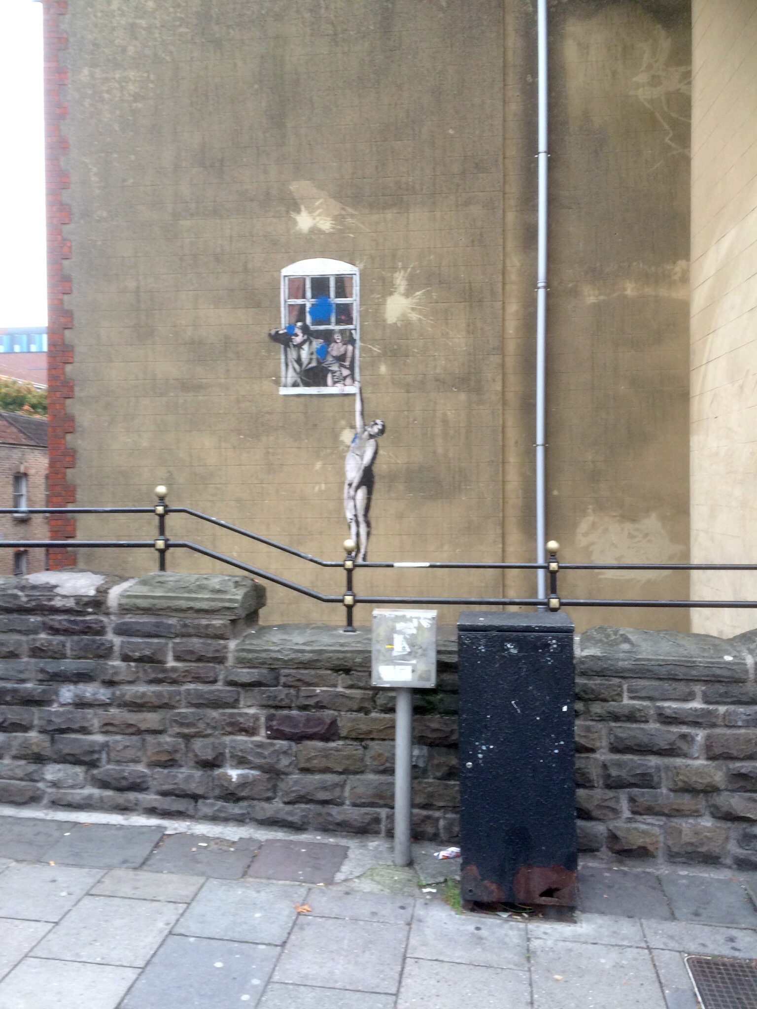 Banksy's frogmore street artwork is actually on the side of a sexual health clinic, with the best views being had from the small bridge at the bottom of park street that crosses frogmore street... Found on frogmore street, the best view of this artwork is from higher up on park street, which is very close to bristol cathedral and the town hall. Frogmore street, well hung lover. Riesige sammlung, hervorragende auswahl, mehr als 100 mio. Hochwertige und bezahlbare, lizenzfreie sowie lizenzpflichtige bilder. As a result, some of his earliest work is hidden around the city, and spotting it is an absolute must for fans of his work.. As you'll see from the image, it has been slightly damaged by someone with a paintball gun, but the overall image of man hiding from his lover's.